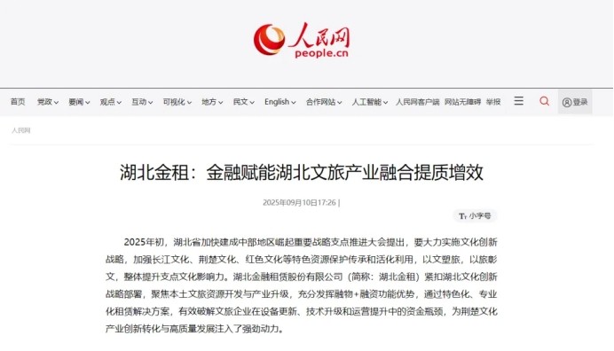 ▼人民網9月10日報道 2025年初,湖北省加快建成中部地區崛起重要戰略支點推進大會提出,要大力實施文化創新戰略,加強長江文化、荊楚文化、紅色文化等特色資源保護傳承和活化利用,以文塑旅,以旅彰文,整體提升支點文化影響力。湖北金融租賃股份有限公司(簡稱:湖北金租)緊扣湖北文化創新戰略部署,聚焦本土文旅資源開...