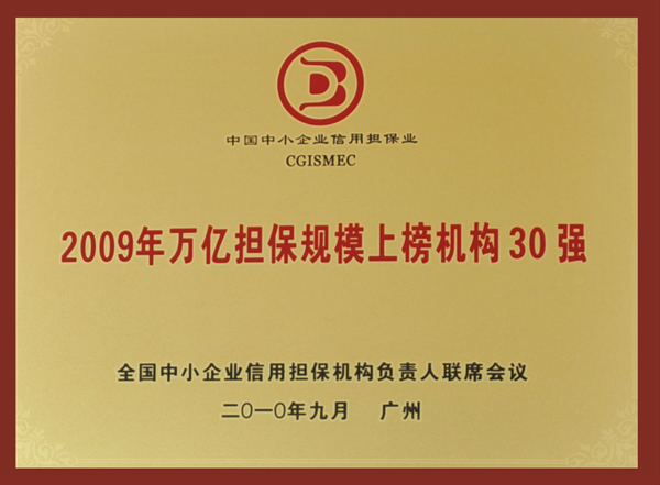 • 2009年度信用管理公司獲全國萬億擔保規模30強