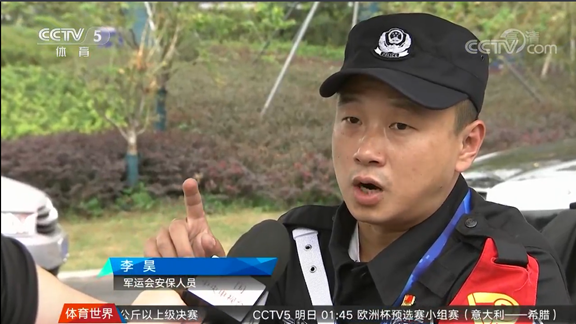 每天下午2點鐘都是安保人員中班開始接班的時間。今天輪到了李昊值班,他大步的走向了停放的巡邏車,開始了對各個崗位的檢查工作。曾經有過當兵經歷的李昊,做事認真,干練負責,他在耐心的回復各崗位發來的信息。本屆軍會期間,李昊主要是在開閉幕式的核心場館區域進行巡邏,自7月15日進駐以來,類似的巡邏檢查更是風雨無阻。