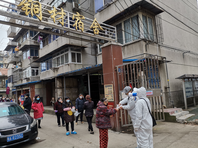 2月12日,根據對口支援的硚口區長豐街天勤花園社區安排,集團旗下長資公司黨員抗疫突擊隊5名隊員深入銅材廠丶機修廠宿舍,宣傳最新防疫政策、發放消毒用品。