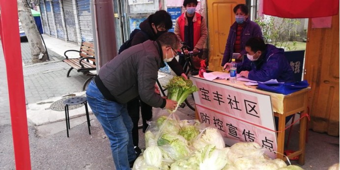 3月6日一早,社區工作者和突擊隊員們又有條不紊地開展蔬菜分發工作,當日上午第一批蔬菜分發工作順利完成。從石首南口蔬菜地到國通信托突擊隊、志愿者服務隊及社區工作者,再到寶豐街居民,這一棵棵蔬菜傳遞的是愛心與溫暖。