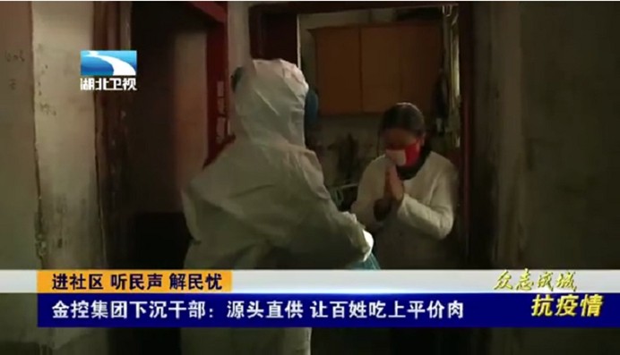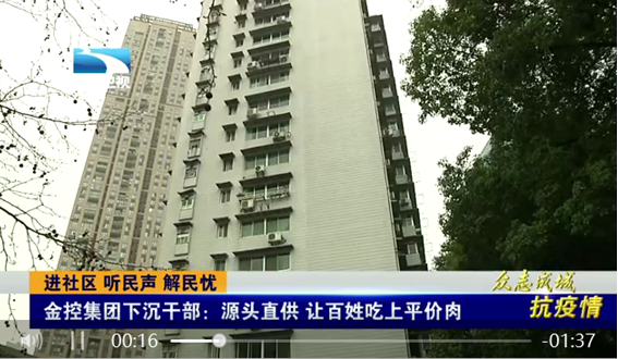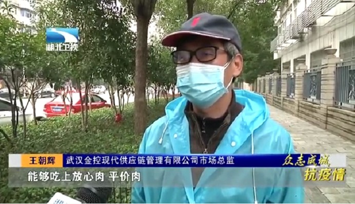 播音員:據(jù)了解,武漢金控現(xiàn)代供應(yīng)鏈管理有限公司將逐步在下沉的91個(gè)社區(qū)開展配送服務(wù),利用社區(qū)的網(wǎng)格力量將平價(jià)肉品快捷送到居民手中。
