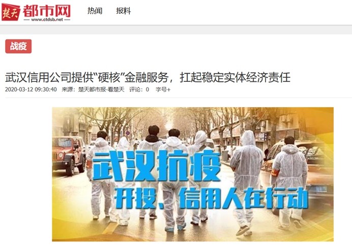 在抗擊疫情期間,武漢信用公司以實際行動支持實體經濟,幫助相關企業穩經營、解難題,為確保金融服務暢通,促進武漢市經濟社會穩定運行作出了應有的貢獻,體現了國企擔當。
