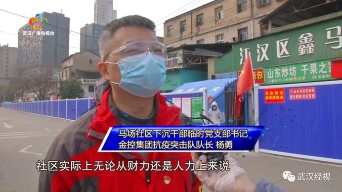 播音員:馬場社區(qū)靠近華南海鮮市場,部分居民是最早一批新冠肺炎病毒感染者。這個社區(qū)還有城中村私房350棟,居民1100多戶,疫情防控壓力很大。街道負(fù)責(zé)人表示,為了更加充分地發(fā)揮下沉干部的作用,臨時黨支部還組建了群眾工作隊,在社區(qū)黨委的領(lǐng)導(dǎo)下開展工作。馬場社區(qū)負(fù)責(zé)人告訴記者,下沉干部的到來為社區(qū)帶來了很大的幫助,而組建臨時黨支部和群眾工作隊以后,將更大的提升他們的工作效能。