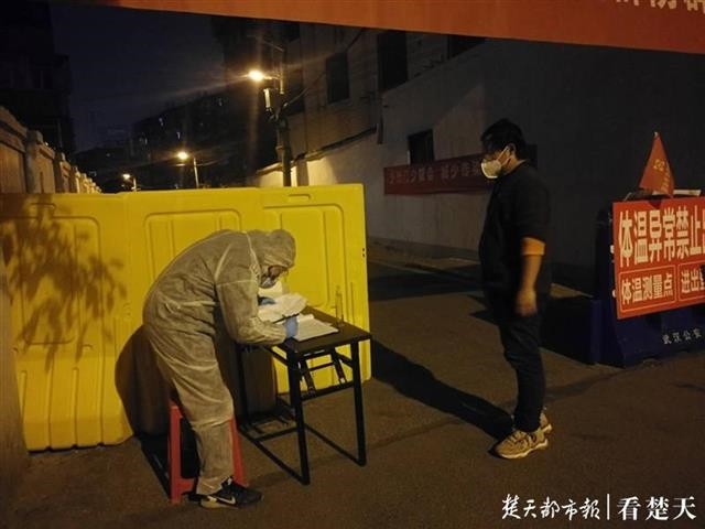 早在兩個月前,武漢開投、信用公司組建了“百人戰團”,百余名突擊隊員下沉到江漢區唐家墩街、北湖街和硚口區寶豐街的14個社區,奮戰在疫情比較嚴重的最前沿,白天晚上輪流守護在小區,幾乎每名突擊隊員都參與夜班輪值,楊勇、程小東、楊浩等人更是通宵值守。