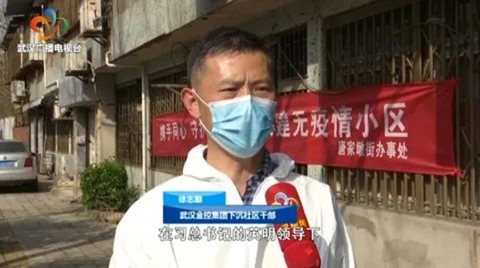 武漢金控集團(tuán)下沉社區(qū)干部徐志勤:在習(xí)總書記的英明領(lǐng)導(dǎo)下,武漢防疫阻擊戰(zhàn)取得了階段性勝利,作為武漢金融控股集團(tuán)突擊隊(duì)員,我們將繼續(xù)扎根社區(qū)防控第一線,嚴(yán)格遵守規(guī)范操作,直到取得人民戰(zhàn)爭(zhēng)的最后勝利。