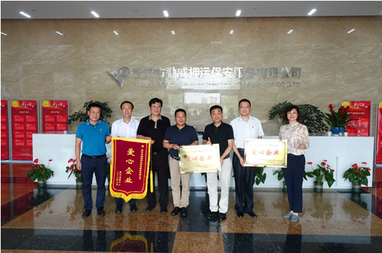 武漢血液中心向融威押運公司贈送牌匾和錦旗