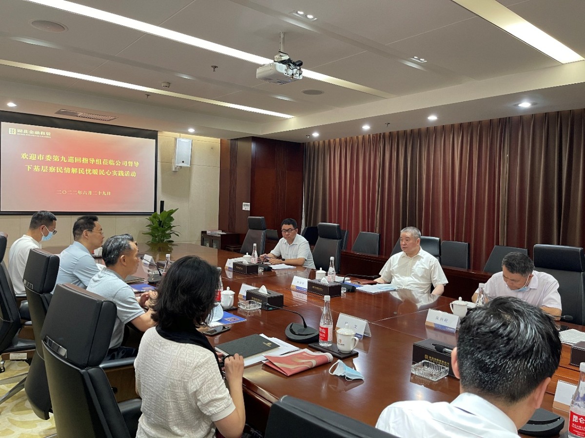 6月27日、29日,市委第九巡回指導(dǎo)組組長(zhǎng)陳祖信一行分別前往集團(tuán)下屬?lài)?guó)通信托、湖北金租公司,調(diào)研指導(dǎo)集團(tuán)黨員干部下基層察民情解民憂(yōu)暖民心實(shí)踐活動(dòng)開(kāi)展情況,重點(diǎn)了解集團(tuán)領(lǐng)導(dǎo)在基層聯(lián)系點(diǎn)調(diào)研和幫扶情況、“三張清單”收集情況、查看相關(guān)資料臺(tái)賬等。