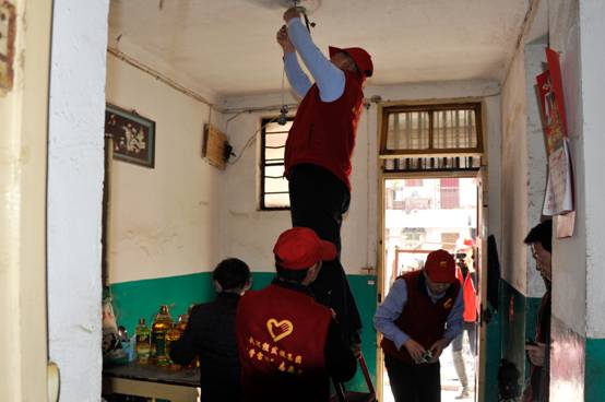 在臺(tái)北路230號(hào)75歲的張靜仙老奶奶家,志愿者們看見她家里的照明線路年久失修、照明燈具多處損壞,存在生活不便和安全隱患,志愿者們逐一檢查線路和電器,把張奶奶家里里外外電器都修了個(gè)遍。得到了在場的社區(qū)干部連連稱贊,張奶奶高興的合不攏嘴。