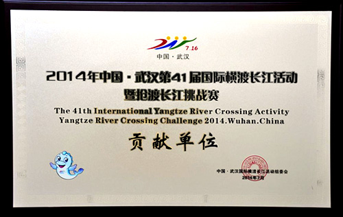 萬(wàn)里長(zhǎng)江橫渡,極目楚天舒。7月16日,為紀(jì)念毛主席暢游長(zhǎng)江48周年,武漢市第41屆國(guó)際橫渡長(zhǎng)江活動(dòng)在武昌漢陽(yáng)門(mén)碼頭隆重開(kāi)幕。在開(kāi)幕式上,集團(tuán)公司被授予“2014年中國(guó)•武漢第41屆國(guó)際橫渡長(zhǎng)江活動(dòng)暨搶渡長(zhǎng)江挑戰(zhàn)賽貢獻(xiàn)單位”。