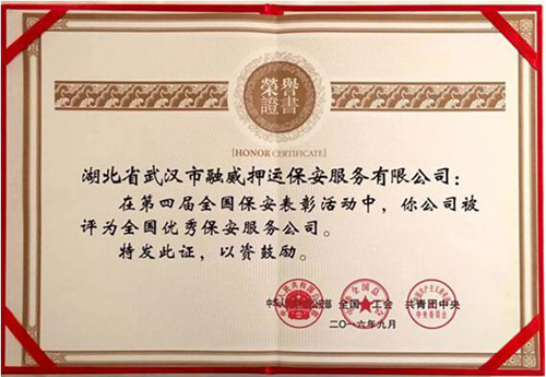10月18日上午,第四屆全國先進保安服務公司、先進保安員表彰大會在北京人民大會堂隆重舉行,武漢市融威押運保安服務有限公司榮獲“全國十佳優秀保安服務公司”稱號。