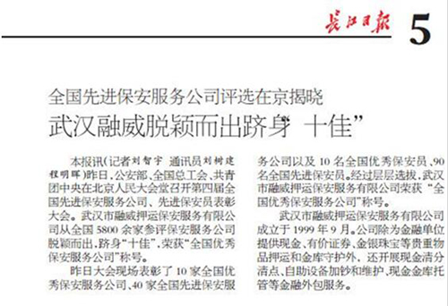 公司喜獲殊榮引起社會廣泛關注和贊譽, 湖北省保安協會第一時間專程發來賀信,《長江日報》、《楚天都市報》、《武漢晚報》等平面媒體,鳳凰資訊、長江網、長江商報、楚天都市網、網易新聞等網絡媒體爭相報道。