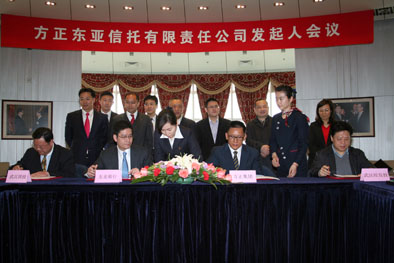 經過各發起人的充分討論,會議審議并通過了公司章程,隨后,各發起人共同簽署了公司章程和投資入股協議等重要法律文件,標志著方正集團、東亞銀行和武漢經發投三家企業集團經過一年多的努力,帶著對中國信托業發展的良好預期,終于喜結良緣。