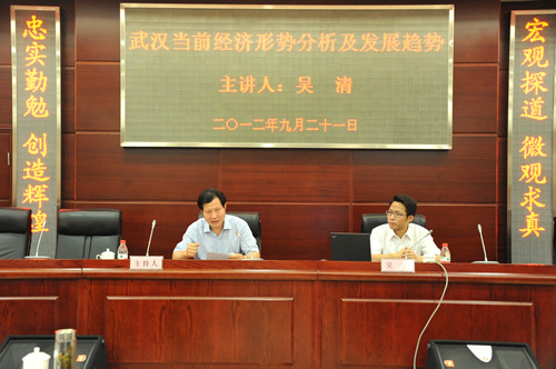 9月21日下午,武漢市發改委主任吳清應邀到集團公司作“武漢當前經濟形勢分析及發展趨勢”的專題講座。集團公司馬小援董事長主持講座。集團公司全體領導、二級公司高管及集團公司本部員工參加了學習。