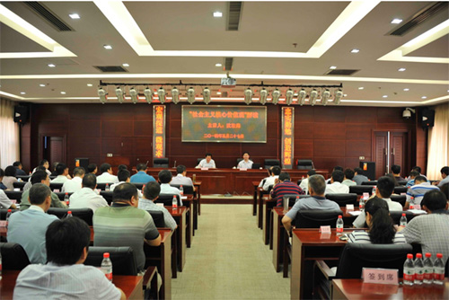 5月27日上午,武漢大學沈壯海教授應邀到集團作題為《“社會主義核心價值觀”解讀》的專題講座。集團公司全體領導、各全資控股公司領導班子成員、集團本部員工100余人參加學習。講座由集團黨委書記、董事長馬小援主持。